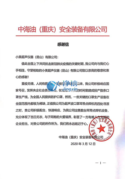 • 疫情無情人有情,中海油攜手小美超聲波口罩點(diǎn)焊機(jī)支援伊朗